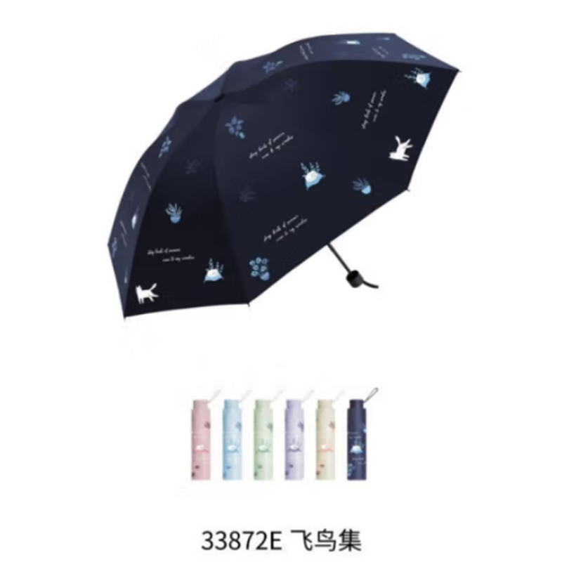 • 定制33631E黑膠晴雨傘8骨三折顏色隨機